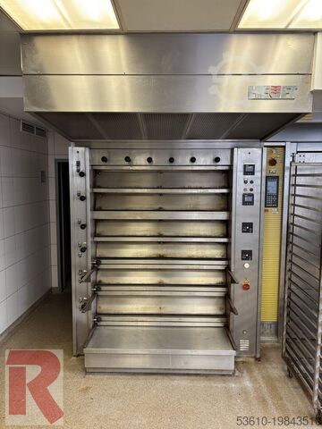 Особо равномерная выпекательная атмосфера благодаря термо-масляной системе, первоклассное пароувлажнение, 2 отопительных контура, нижние 3 яруса оснащены "турбо-функцией" с циркуляцией воздуха. Корпус полностью из нержавеющей стали, включая вытяжной зонт с выступом примерно 1 м. Простое ручное управление без сложной и уязвимой электроники.