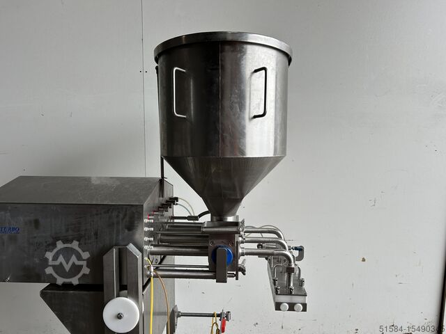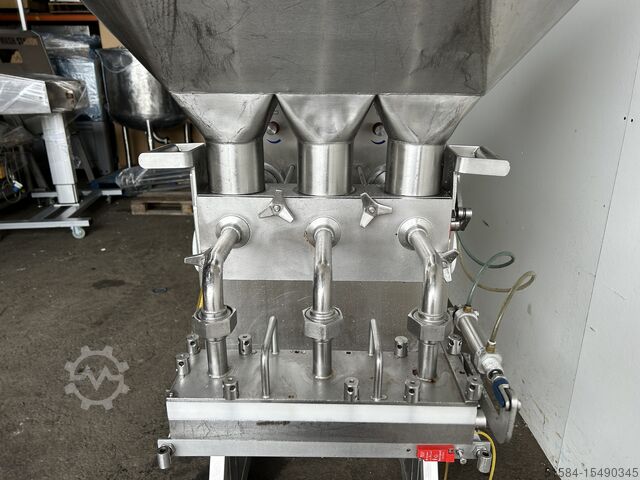 2011, нержавеющая, регулируемая по высоте рама, три поршня, с головкой на 12 мини-дробин с поворотным отсекающим клапаном, регулируемая по высоте рама, мобильная