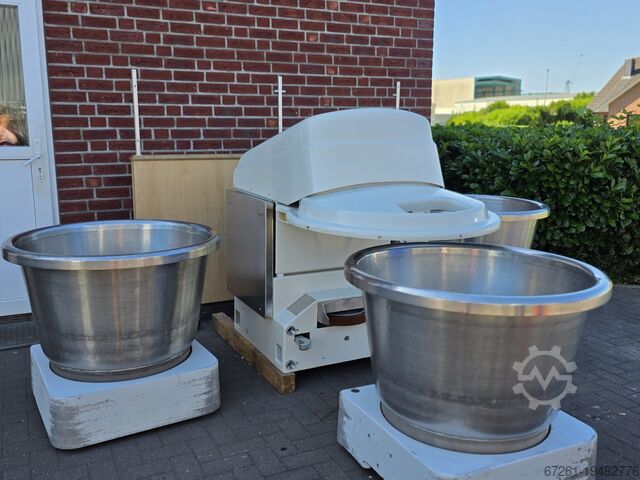 б/у спиральный тестомес W&P UC80, на 80 кг муки на котёл, в пекарском состоянии (хорошее состояние), выдвижной, 2 таймера, месильный рычаг из нержавеющей стали, с 1 котлом из нержавеющей стали, при необходимости до 2 дополнительных котлов по 2 500 € за штуку