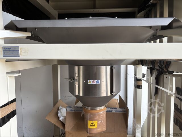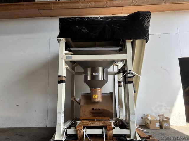 2015 г., станция выгрузки биг-бэгов Pavan, в наличии четыре единицы, рама 1600 мм Д x 1600 мм Ш x 2300 мм В, дополнительная рама для увеличения высоты при необходимости, установлены вибрационные бункеры с ситом, все оснащены абсолютно новым электрическим цепным тельфером RWM CE WR2000, грузоподъемность до 2000 кг, никогда не использовались в производстве, новое оборудование, в наличии четыре единицы.