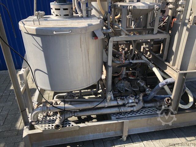 Контейнер емкостью около 200 л с анкерной мешалкой с настенными абстракционными элементами