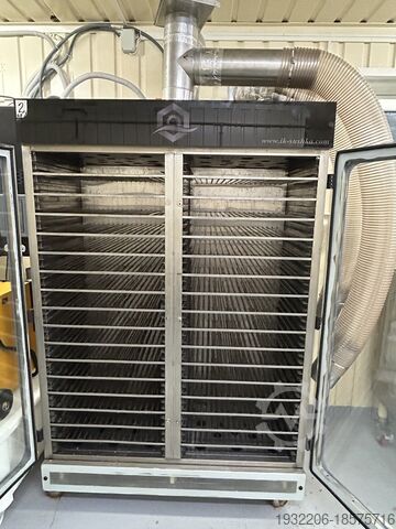 3 infrared drying ovens for 44 trays, 68 trays and 56 trays respectively with a set of 208 stainless steel trays 60x60 cm with a Teflon mesh and 4 stainless steel trolleys for these trays. Description in the appendix.
