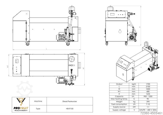 Дизельный пастеризатор имеет встроенный бойлер. Внутри горелки находится трубчатая нагревательная спираль из нержавеющей стали. Жидкость поступает в трубчатую спираль, которая окружена горячей водой. Тепло воды мгновенно нагревает жидкость и уничтожает бактерии.