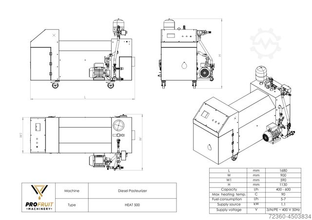Дизельный пастеризатор имеет встроенный бойлер. Внутри горелки находится трубчатая нагревательная спираль из нержавеющей стали. Жидкость поступает в трубчатую спираль, которая окружена горячей водой. Тепло воды мгновенно нагревает жидкость и уничтожает бактерии.