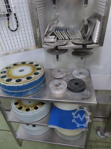 Машина поставляется полностью отремонтированной с полным комплектом колес для 40, 50, 60 или 75 мм (1,57″ / 2″ / 2,36″ / 3″) решеток для нарезки моркови гноем для изготовления батонов 7,5 x 7,5 мм (0,3″ x 0,3″) или 10 x 10 мм (0,4″ x 0,4″)