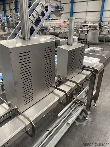 Машина для запечатывания предварительно сформированных пакетов doy pouch, упаковывала фрукты киви для крупных супермаркетов Великобритании. Использовалась всего пару сезонов и с тех пор хранилась на складе.