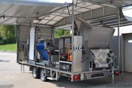 Мобильные установки "Кройзмайр" используются для переработки фруктовых соков на месте. Фрукты загружаются в промывочную емкость с опрокидывателем бункеров, транспортируются к измельчителю, дробятся, а затем подаются на ленточный пресс сита. Полученный сок автоматически перекачивается в емкости, нагревается в пастеризаторе примерно до 80°С, а затем разливается в мешок в ящик.