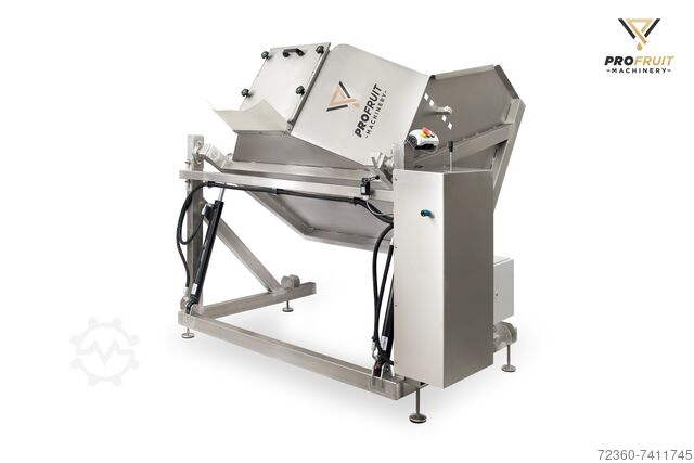 Это первый этап обработки, во время которого машина передает фрукты, овощи или ягоды на следующие этапы обработки: мойку, сортировку или дробление. Бункерный опрокидыватель поднимает ящик и высыпает продукцию на сортировочный конвейер, AQUA или MAXIMILL.