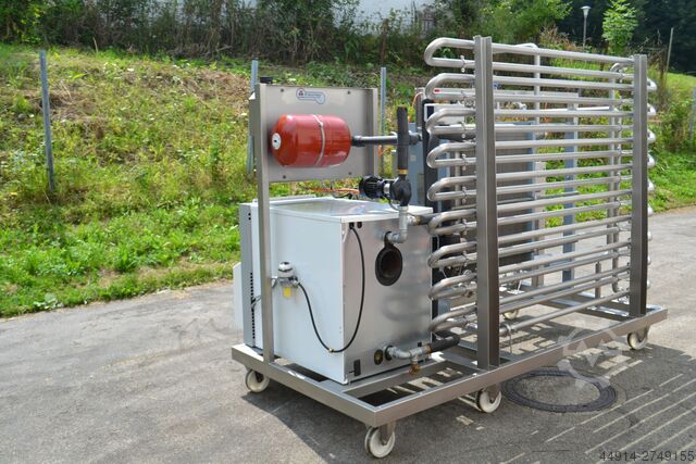 Нагревательный контур, нагревательный насос и расширительный бак, 2 теплообменника для предварительного подогрева / переохлаждения сока и подогрева до 80°C.
