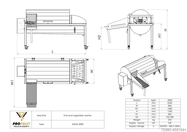 Мойка фруктов и овощей AQUA 3000 предназначена для мытья и очистки фруктов и овощей перед их переработкой. Свежая вода и мягкие щетки оставляют продукт нетронутым, мягко и чисто мыть.