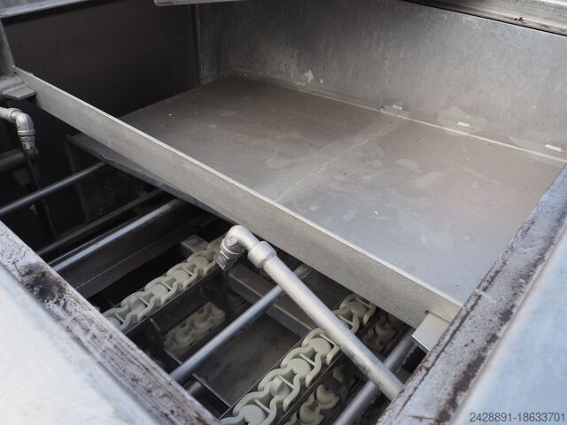 Пароочиститель для ящиков/контейнеров 60x40 Бренд Maskinfabrikken Hillerslev a/s, пластиковая цепь, ширина ленты: 350 мм, просвет: 650мм x 200мм, габаритные размеры: 7300мм x 1500мм x 2000мм Bscov Ey Ugs R Nc Ifnjli
