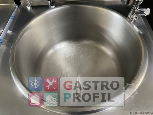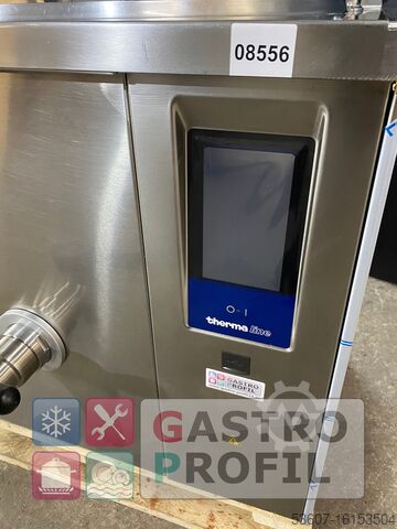 Это электрический круглый чайник от производителя премиум-класса Electrolux/Therma из Швейцарии, тип PBON15EKEM (150 л) года выпуска 2017. Прибор подходит для варки, приготовления на пару, тушения или кипячения/тушения продуктов. Чайник оснащен закрытой неперезаправляемой системой "электрического парового нагрева (без дозаправки из водопровода)". Нагрев осуществляется с помощью системы электрического парового нагрева. Здесь электрическая энергия преобразуется в пар, рабочее давление 1,5 бар. Нагревательные элементы оснащены защитой от закипания. Мощность нагрева разделена на 4 уровня нагрева с автоматическим переходом от кипячения к кипячению с помощью энергосберегающего микропроцессорного управления. Оснащен сенсорным управлением therma для постоянного, легко читаемого отображения заданных и фактических значений, таких как температура, время работы и уровень мощности. Это цокольная установка без ножек (ножки могут быть установлены по запросу). Чайник был протестирован в нашей собственной специализированной мастерской и полностью исправен.
