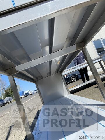 Это прочный рабочий стол из нержавеющей стали, закрытый с левой стороны, на 6 регулируемых ножках, с полкой и подставкой 50 мм. Благодаря своей прочной конструкции он также очень хорошо подходит для пищевых производств. Рабочий стол новый, не использовался, еще ламинированный.