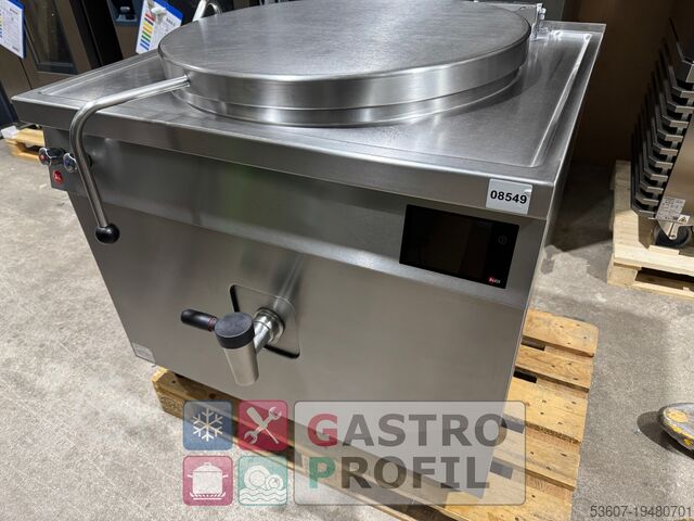 Предлагается 150-литровый котел-скороварка (FES 150) премиум-бренда Küppersbusch (ныне Phoeniks), (002153). Слив осуществляется легко с помощью предохранительного сливного крана. Котел оснащён электронным терморегулятором и инновационной системой управления KCI Touchpanel.