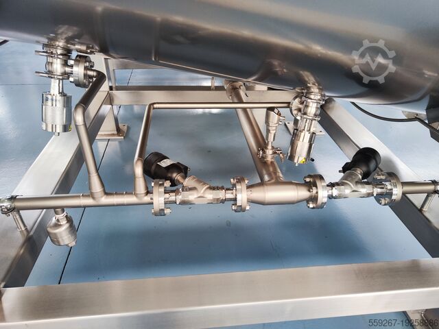 Горизонтальный смесительный бак BERMA INOX объемом 3500 литров — это надежное и универсальное оборудование, предназначенное для смешивания, диспергирования или гомогенизации продуктов средней и высокой вязкости. Его конструкция из санитарной нержавеющей стали и горизонтальная компоновка делают его особенно подходящим для промышленных процессов, где требуется равномерное и эффективное смешивание в средних и больших объемах.