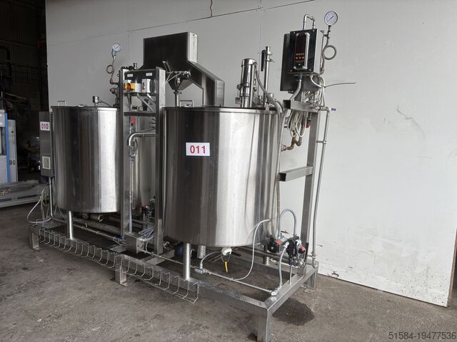 Карамельная система приготовления Cretors Flothru FTKS150S 2017 года, из нержавеющей стали, система приготовления карамели, состоит из двух 500-литровых нержавеющих варочных емкостей с рубашкой, верхними миксерами SPX, центральным нижним сливом с двойными приводами Triac и клапанными системами Flowserve automax, всё смонтировано на нержавеющей раме, 3-фазное питание
