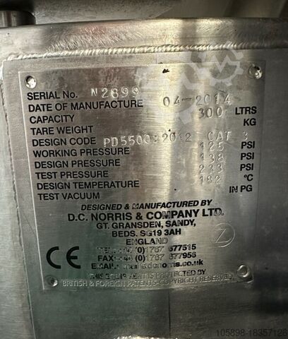 Система приготовления пищи DC Norris, состоит из 300-литровых и 500-литровых сосудов с независимыми панелями управления, подъемника для контейнеров и перекачивающего насоса. Оборудование в хорошем состоянии с завода и будет вывезено с завода в Европе в конце января 2025 года.