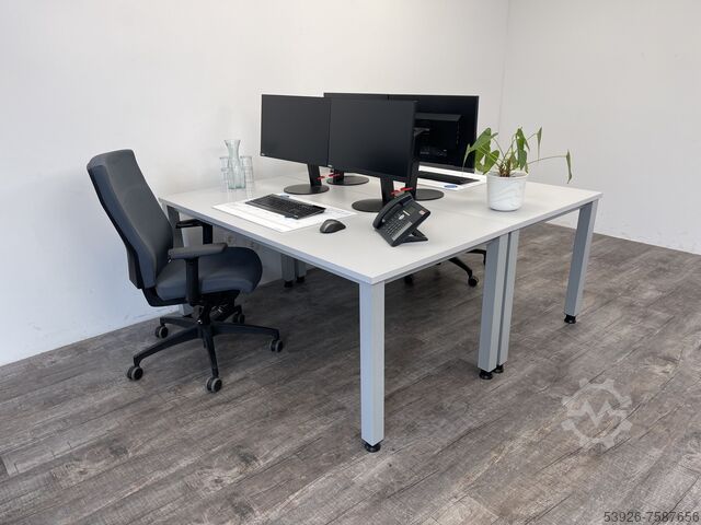 - Приблизительно 10x столов от производителя FM 1600 x 800 x 680 - 760 (плавная регулировка высоты) в цвете светло-серый. Алюминиевый каркас