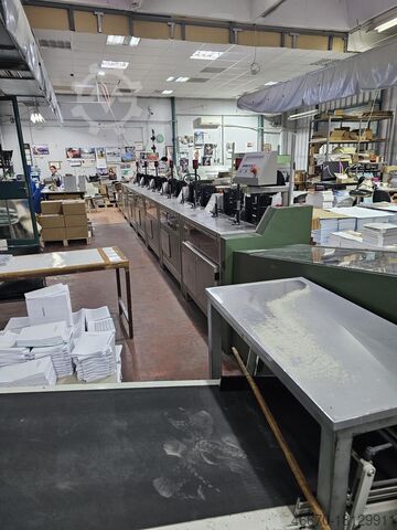 Предложение включает в себя: Müller Martini Tigra Год производства: 1999 г. Технические характеристики: - ZTM 1571 12 станций сбора + станция ручной подачи (1999 г.) - Доставка крест-накрест - Линия идеального переплета термоклеем Tigra (1999 г.) - Сушильные ленты - Триммер с тремя ножами Esprit (2007 г.) ) - Укладчик Uno (2007 г.) - Макс. формат: 370 x 285 мм - Мин. формат: 120 х 100 мм. Толщина книги: 3–40 мм. количество зажимов: 9 - Скорость производства: 1000 - 3600 циклов/час