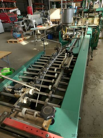 Оригинальная японская линия по производству картонных книг. 16 станций склеивания, прессы, трансферы, прикрепление обложек, трехножевой резак, скругление углов. Производительность до 5000 картонных книг в час. В комплект входят специальные картонофальцевальные машины.