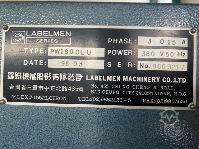 Этикетка Labelmen PW180DLU, год выпуска 1996, 4 цвета, перфоратор, устройство для тиснения, различные монтажные пластины, ламинатор, УФ-сушка, размотчик, щелерез, в хорошем состоянии, срочно в наличии