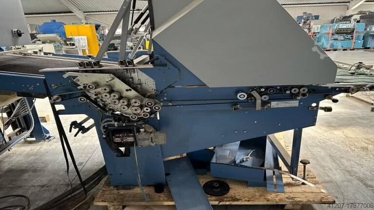 Машина MBO T 960-1-960/4, выпущенная в 2012 году, имеет формат 960 x 1450 мм и в настоящее время находится на складе в Германии. Максимальная механическая скорость составляет 230 об/мин, а также он оснащен шумозащитным кожухом. Машина оснащена системой управления MBO Navigator и устройством подачи штабелей поддонов. Имеет 4 кармана и может обрабатывать листы размером минимум 170 x 200 мм. Машина повреждена водой и продается в текущем состоянии с возможностью осмотра. Предлагается в качестве донора запасных частей. Условия поставки — FCA.
