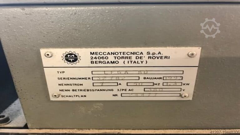 Meccanotecnica Lega 80 - Пресс-станция — это машина, произведённая компанией Meccanotecnica в 1993 году. В настоящее время она производится в Германии и оснащена прессовым модулем и вертикальным выкладчиком стопы. Условия поставки — FCA.