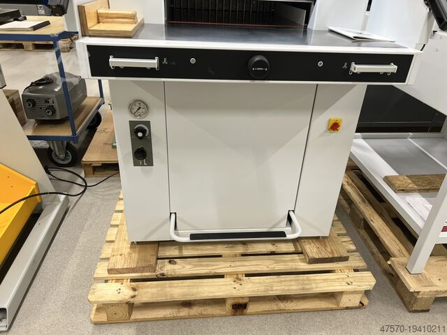 Высокопроизводительный и точный гидравлический резак — идеально подходит для малых и средних типографий. Простое и интуитивно понятное управление, при этом — параметры промышленной машины большого класса.