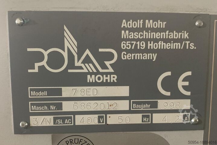 Бумагорезальная машина Polar 78 ED, год выпуска 1998, номер машины 6862012, программное управление, воздушный стол, световые барьеры, в хорошем состоянии, доступна немедленно