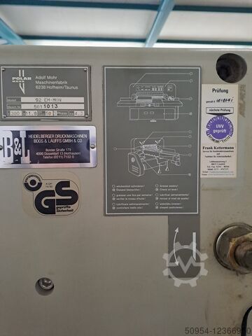 Бумагорезательная машина Polar 92 EM-MON, воздушный стол, световые барьеры, программное управление, номер машины 5811013, в хорошем состоянии, можно приобрести немедленно