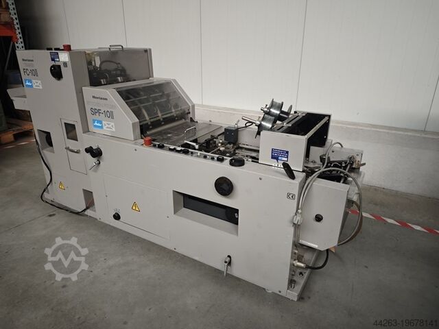 Данная подержанная машина, состоящая из блока сшивки и фальцовки Horizon SPF-10 II и фронтального резака Horizon FC-10II, предлагает комплексное решение для изготовления брошюр и буклетов. Несмотря на возраст, оборудование остаётся эффективным и точно обрабатывает печатные материалы.