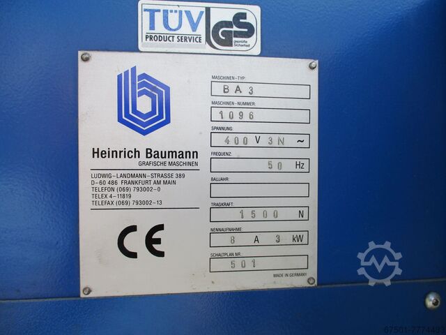 Разгрузочное устройство Baumann BA 3 Год 2007 Формат листа макс. [мм]* 800 x 1200 Boc R Nc Isiqkibjfnewp Высота свай [мм] 1400 Вес бобины [кг] 150 Высота поддона мин. [мм] 130