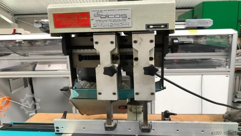 Двухголовочная сверлильная машина Elcos произведена компанией Elcos в 1992 году и имеет формат 45 x 150 мм. В настоящее время хранится в Германии. Машина оснащена регулируемым межцентровым расстоянием сверления 45–150 мм, свободным пространством за сверлильными головками 100 мм и представляет собой двухголовочную бумажно-сверлильную машину. Управление осуществляется с помощью рычага, питание — однофазное, 240 В. Условия поставки: FCA.