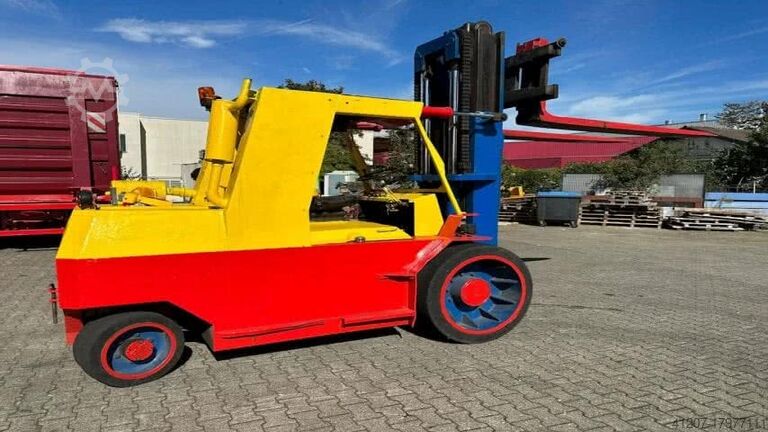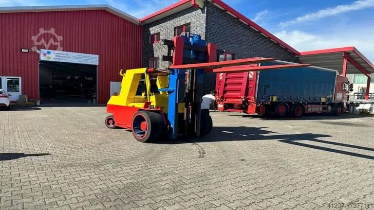 14-тонный вилочный погрузчик от Stube Foerdertechnik GmbH представляет собой машину формата 450 x 460 мм. В настоящее время товар имеется на складе в Германии. Этот вилочный погрузчик имеет высоту подъема 225 см и оснащен 6-цилиндровым дизельным двигателем Deutz. Он оснащен двухколесным подъемным механизмом и имеет размеры 360 см в длину, 200 см в ширину и 240 см в высоту. Погрузчик весит 18 700 кг, имеет длину вил 250 см и ширину 30 см. Условия поставки — FCA.