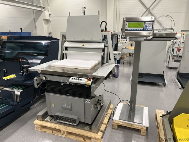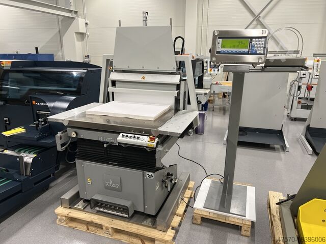 Машина дополнительно оснащена системой взвешивания листов Bizerba, которая позволяет производить подсчет листов на машине, тарирование, упаковку и т. д.