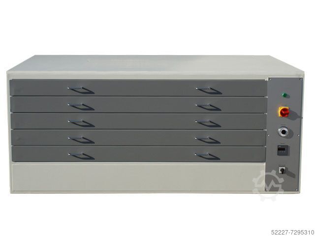 Фигурный, устойчивый сушильный шкаф цельностальной конструкции, с 5 выдвижными ящиками, плавно работающими на шарикоподшипниках. Хорошая циркуляция воздуха, с термостатом и таймером. Верхняя крышка из белой Formica, которая также может быть использована в качестве полки.