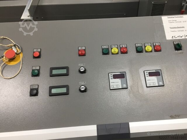 5-зонный канал, 4 сегмента горячего воздуха, 1 сегмент охлаждения, рабочая ширина: 2 x 750 мм, общая длина: 13 900 мм, общая ширина: 2 600 мм, общая высота: 1 440 мм, скорость ленты: 1 10 м/мин, газовая горелка Weishaupt, мощность газовой горелки: 100 кВт, макс. температура: 180° C, подключаемая нагрузка: 25 кВт/54А, сжатый воздух: 6 бар, б/у, год выпуска: 2010, очень хорошее состояние