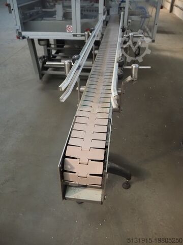 Упаковочная машина в термоусадочную пленку Ica S.p.A., модель: SFE 800V-858, серийный номер: V4806, год выпуска: 2007, 400 В, 3 фазы, 50 Гц, 26/33 А, пластиковый входной транспортер, ширина ленты: 115 мм, ширина запайки: 630 мм, просвет: 185 мм x 260 мм, выходной транспортер из нержавеющей сетки, ширина ленты: 650 мм, габаритные размеры: 5000 мм x 1500 мм x 1900 мм. Без компрессора и кожухов из нержавеющей стали.