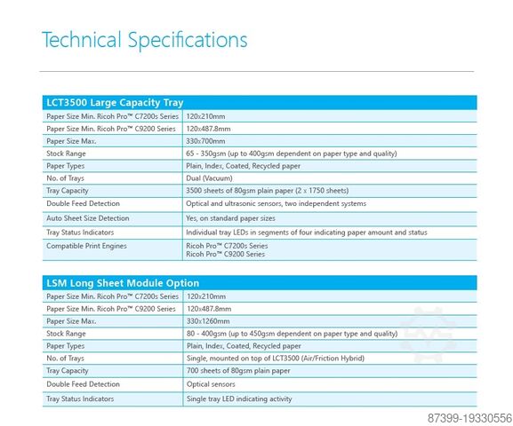 Емкость лотка: 3500 листов обычной бумаги плотностью 80 г/м² (2 x 1750 листов)