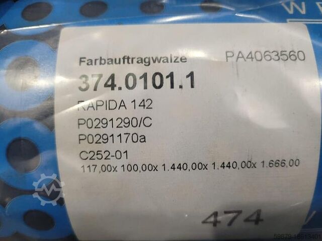 - нет. 374.0101.1 Валик для нанесения краски Westland Ink, Ø 117 мм, новый (4 шт.)