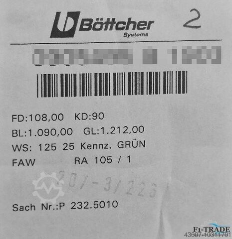 Hersteller / Производитель BöttcherBöttcher KBA RA 105 Roller 0905480 B 1902