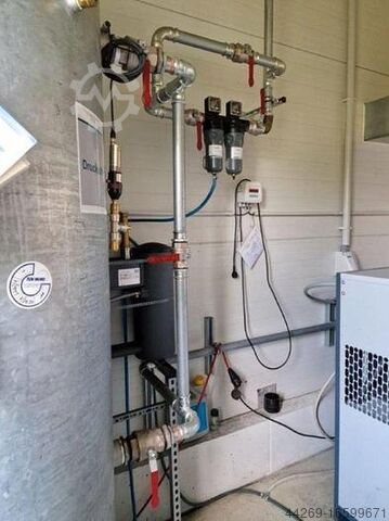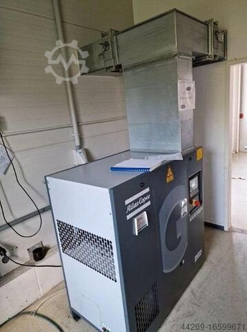 Винтовая компрессорная установка Atlas Copco GA15VSD с осушителем и резервуаром объемом 1000 л для производства и хранения сжатого воздуха для промышленности и торговли.