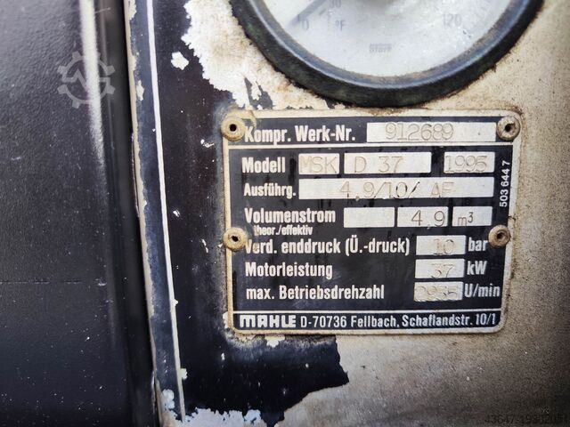 Mahle Screw Compressor, Винтовой компрессор, Компрессор; Mahle MSK D37, 37 кВт Винтовой компрессор, Б/у машина