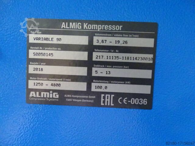 Винтовой компрессор ALMIG Variable 90, № S0050145, год выпуска 2018, 100 кВт