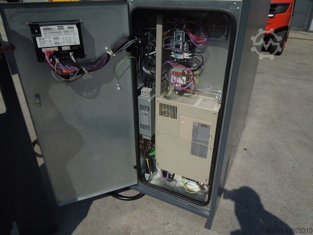 Винтовой компрессор ATLAS COPCO GA37VSD+FF: машина с частотным преобразователем, осушителем воздуха и теплообменником после сервисного обслуживания.