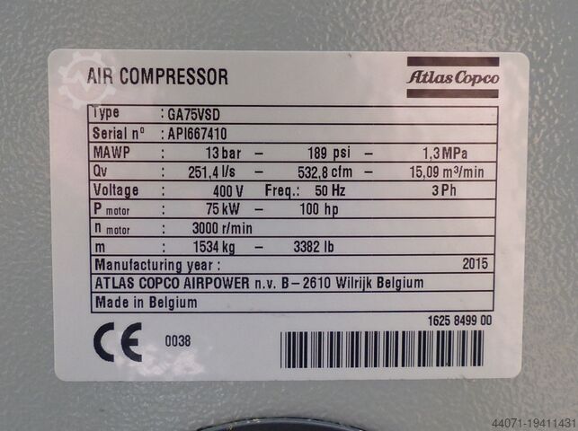 Винтовой компрессор GA75VSD Atlas Copco GA75VSD