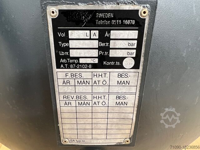 Винтовой компрессор Kaeser mod SX7 с соответствующим баком, год выпуска 2002. Объем бака 325 литров.