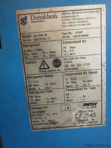 Полный воздушный компрессор Atlas Copco, включая ультрафильтр Donaldson и резервуар в хорошем рабочем состоянии