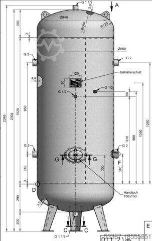 Баллон сжатого воздуха 1000 литров стоячий, оцинкованный 11 бар