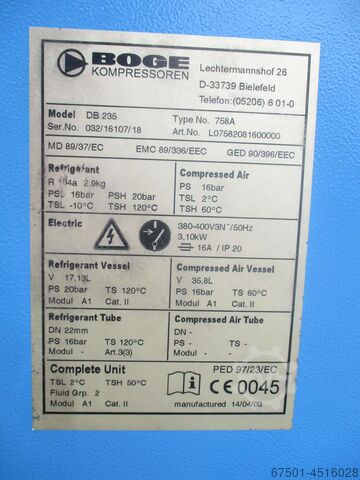 Охладительный осушитель Сжатый воздухоосушитель BOGE DB 235 Trockner